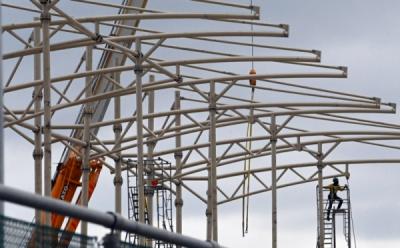 Pekerja Selesaikan Pembangunan Tribun Penonton di Sirkuit Mandalika Lombok
