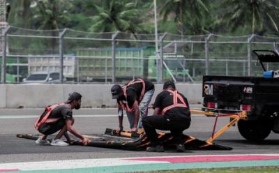 Gunakan Mobil Pick Up, Begini Cara Membersihkan Debu di Trek Sirkuit Mandalika