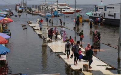 Banjir Rob Rendam Pelabuhan Kali Adem