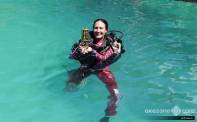 Nadine Chandrawinata Berenang Sambil Bawa Obor Asian Games 2018 di Perairan Raja Ampat