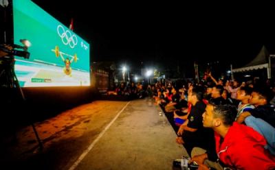 Layar Tancap Nobar Lifter Rizki Juniansyah Raih Emas Olimpiade Paris