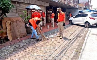Pol PP Tegur Warga yang Tidak Pakai Masker di Jalan Pasar Tamansari Serang
