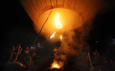 Meriahkan Lebaran Ketupat, Warga Terbangkan Balon Asap