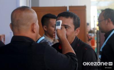 Pengunjung Pameran GIICOMVEC Dicek Suhu Tubuh