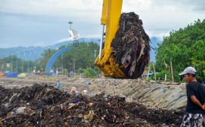 Tumpukan Sampah di Pantai Muaro Lasak Padang Dipindahkan ke TPA