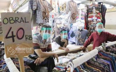 Potret Pedagang Pasar Tanah Abang Pakai Pelindung Wajah