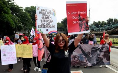 Peringatan Hari Perempuan Sedunia, Aktivis Bentangkan Poster di Kawasan Patung Kuda