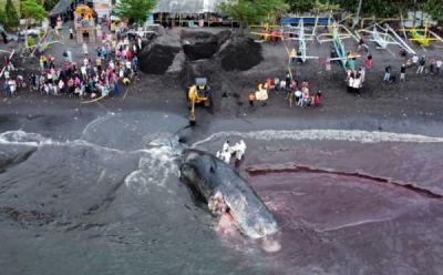 Darah Bangkai Paus Mulai Cemari Pantai Banyuwangi
