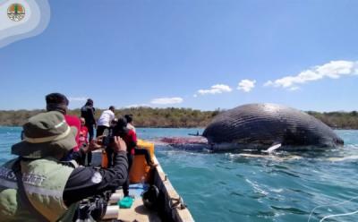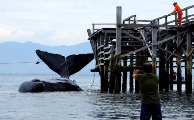 Tim Gabungan Periksa Bangkai Ikan Paus yang Terdampar di Pantai Bunko