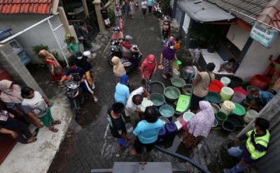 Pipa Bocor, Warga Surabaya Antre Dapatkan Air Bersih