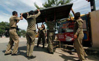 Satpol PP Bandar Lampung Bongkar Kios Dagang di Trotoar