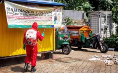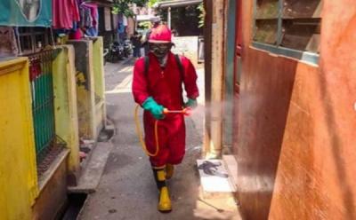 Petugas Damkar Blususkan Semprot Disinfektan di Cipinang Melayu