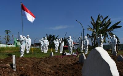 Relawan Covid-19 Gelar Upacara Peringatan HUT RI di Area Pemakanan