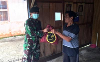 Yonif PR 433 Kostrad Bagikan Sembako dan Masker di Kecamatan Simbang