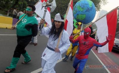 Superhero Ramaikan Karnaval Kampanye Damai Pemilu 2019