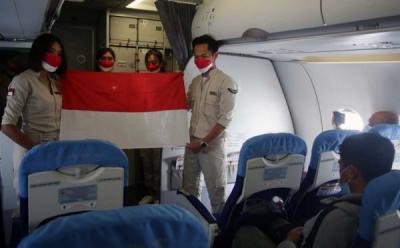Pengibaran Bendera Merah Putih di Dalam Pesawat Super Air Jet