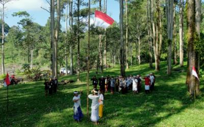 Warga Kenakan Baju Adat Kibarkan Bendera di Hutan Bali