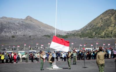 Suku Tengger Gelar Upacara Pengibaran Bendera Merah Putih di Gunung Bromo