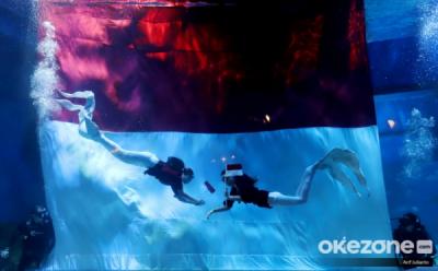 Bendera Merah Putih Raksasa Dikibarkan di Bawah Air Jakarta Aquarium