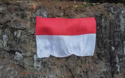 Pengibaran Bendera Merah Putih di Tebing Mandalare
