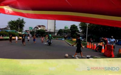 Anak-Anak Manfaatkan Penutupan Jalan untuk Bermain Bola