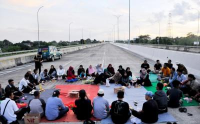 Pendemo Buka Puasa Bersama saat Tutup Jalan Tol Jatikarya Bekasi