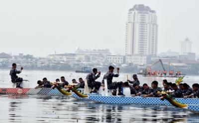 Prajurit TNI AL Atraksi Perahu Naga di Festival Pesona Wisata Pesisir Waduk Pluit