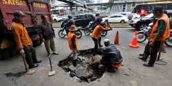 Perbaikan Jalan Berlubang di Kawasan Grogol