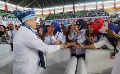 Mahfud MD dan Hary Tanoesoedibjo Disambut Meriah Santri di Bekasi