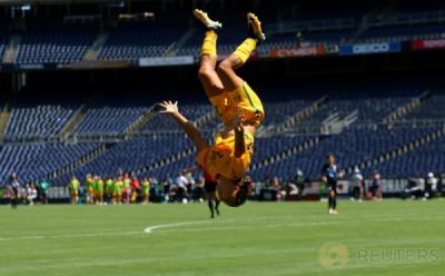Aksi Salto Pesepakbola Wanita Timnas Australia