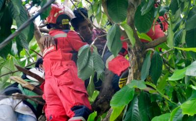Petugas Damkar Evakuasi Warga yang Tersengat Listrik saat Potong Dahan Pohon