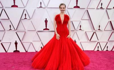 Pakai Gaun Merah, Amanda Seyfried Pamer Belahan Dada di Piala Oscar 2021