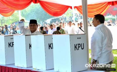 Kenakan Kemeja Putih & Peci Hitam, Prabowo Nyoblos di TPS 041