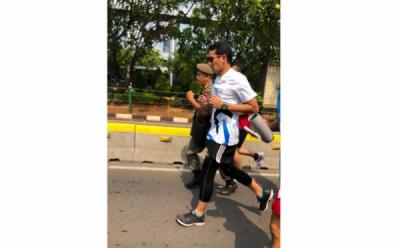 Sandiaga Uno Berlari Usai Mengikuti Deklarasi Kampanye Damai