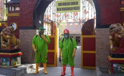 Demi Kenyamanan Beribadah, Klenteng Hok Ie Kiong Slawi Disemprot Disinfektan