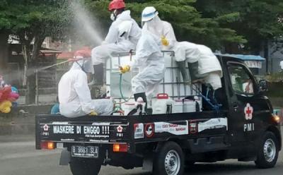 Relawan PMI Blusukan Rumah Warga Semprot Disinfektan