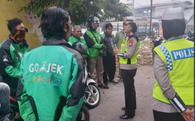 Polwan Berikan Penyuluhan Terkait Covid-19 ke Driver Ojeg Online