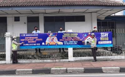 Polwan Pasang Spanduk Operasi Ketupat Jaya 2020