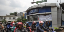 Pos Polisi Menteng yang Rusak Ditutup Kain