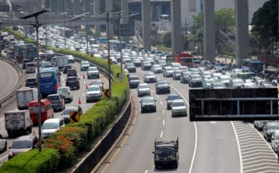 Jalan Sudirman Macet saat Penerapan PPKM Level 3 Diperpanjang