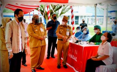 Presiden Jokowi Tinjau Vaksinasi Pelaku Usaha di Kendari
