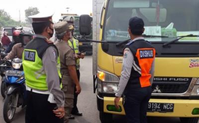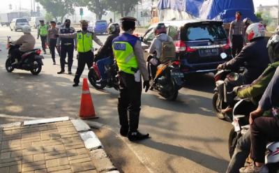 Petugas Gabungan Pantau Pelanggar PSBB di Check Point Kalideres