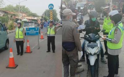 Petugas Gabungan Giat PSBB di Check Point Layang UI