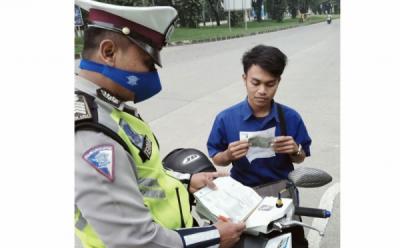 Arus Lalu Lintas Lancar saat Pelaksanaan Giat PSBB di Check Point Layang UI