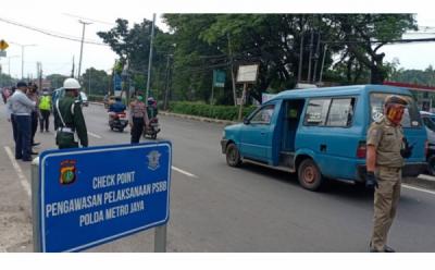 Suasana Pengawasan Pelaksanaan PSBB di Check Point Pasar Rebo