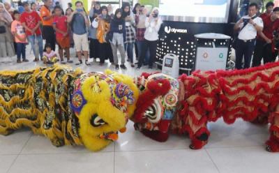 Aksi Barongsai di Stasiun Gambir