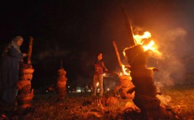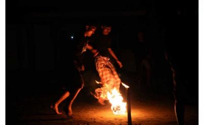 Potret Santri Bermain Sepak Bola Api Dipenghujung Ramadhan