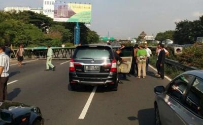 Tiang Rambu Petunjuk Jalan Roboh Akibat Ditabrak Truk