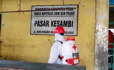 Giat Penyemprotan Disinfektan di Lingkungan Pasar Kesambi
