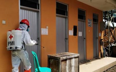 Lingkungan Pasar Lebaksiu Disemprot Cairan Disinfektan